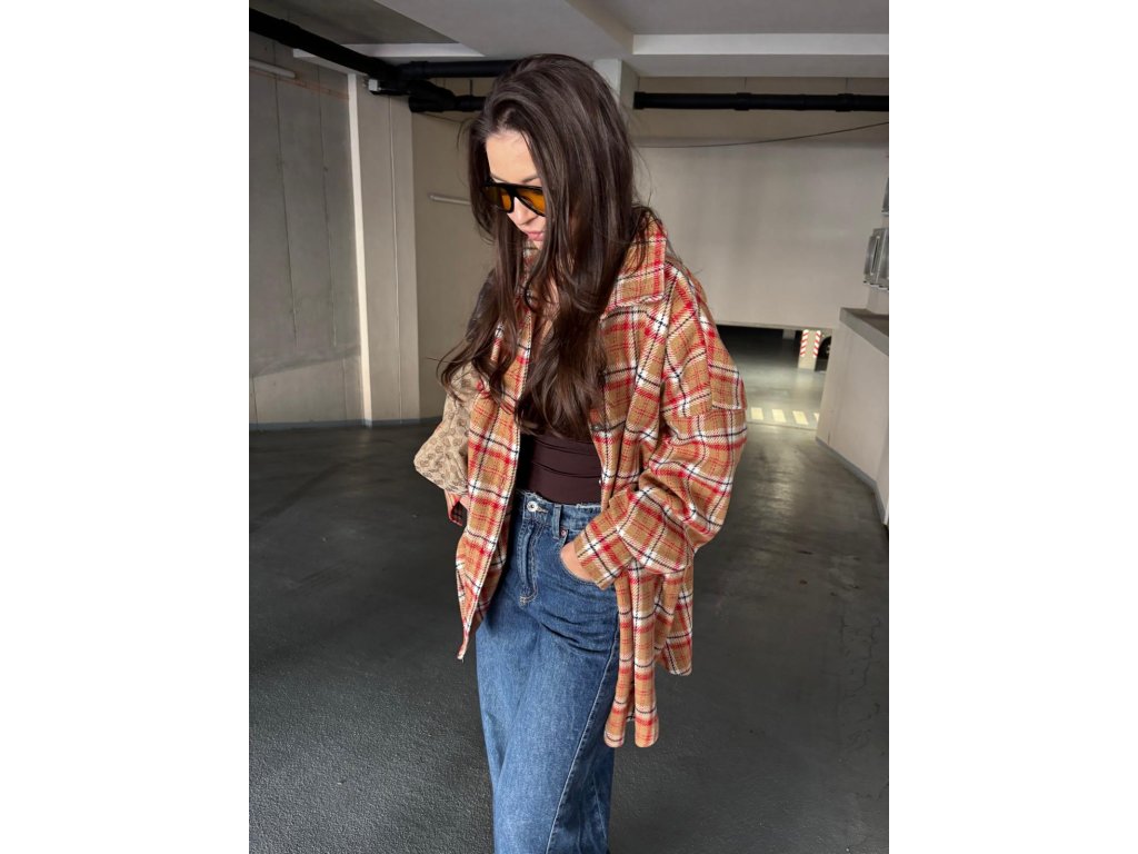 Oversize károvaná košeľa z hrubšieho materiálu v kombinácii bledo hnedej a červenej farby. Skvelá na vrstvenie počas chladnejších dní, pohodlná a nadčasová. Ľahko ju skombinuješ s džínsami aj legínami pre ležérne, no premyslené outfity. Košeľa je univerzálneho strihu.