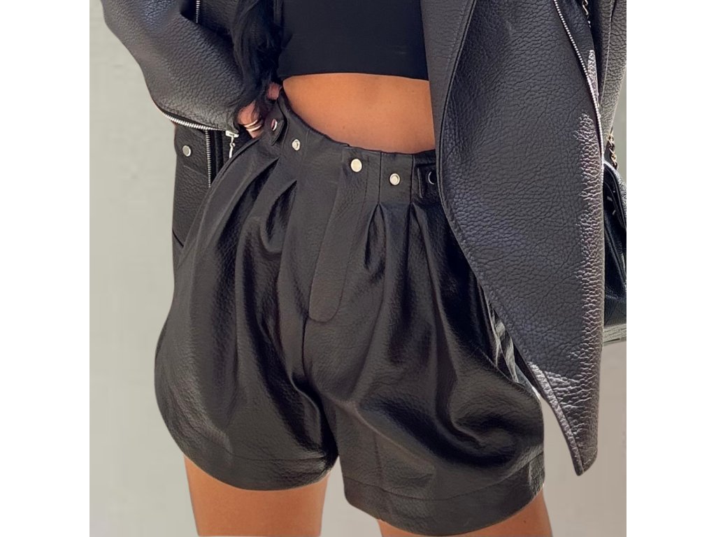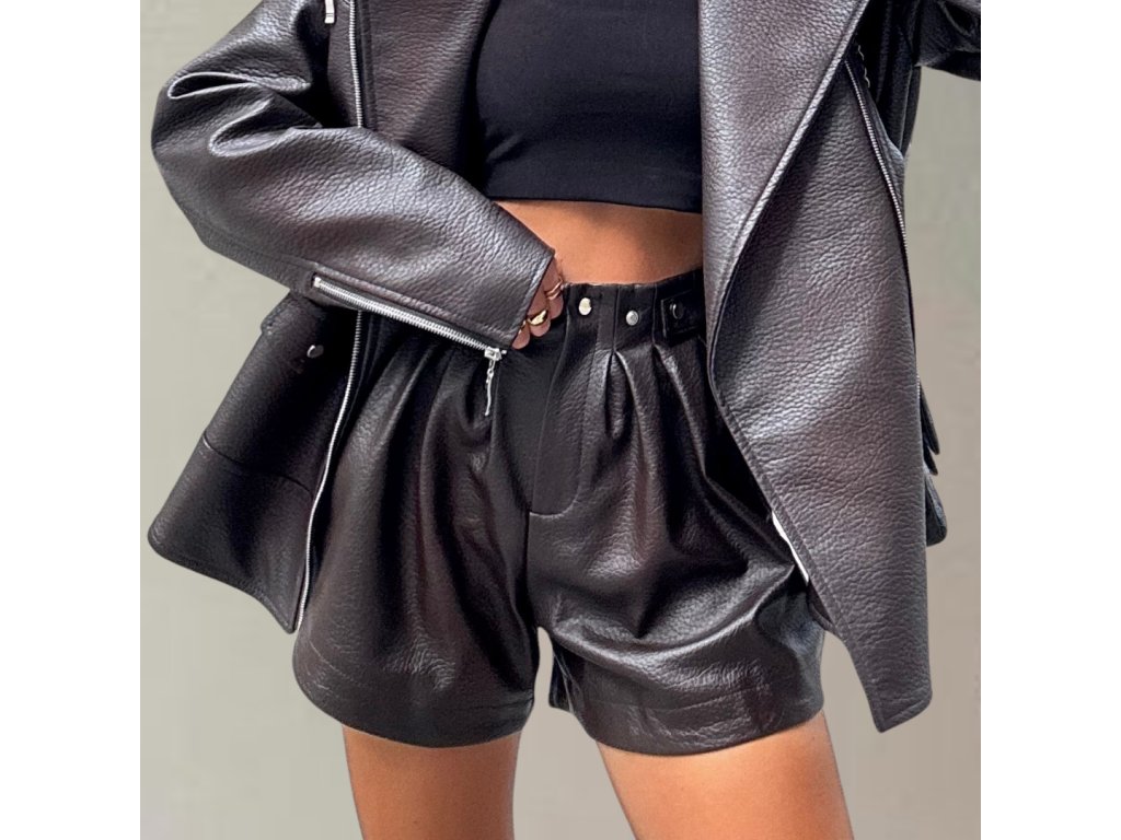 Tmavohnedé kraťasy z príjemného materiálu (imitácia kože) s vyšším pásom, širšou nohavicovou časťou a elastickým zadným pásom pre maximálne pohodlie. Štýlový a zároveň univerzálny kúsok vhodný na každodenné nosenie aj výnimočné príležitosti. Kraťasy majú univerzálnu veľkosť, ideálne ak nosíš M-L.