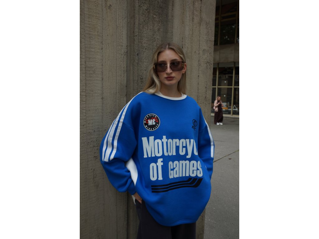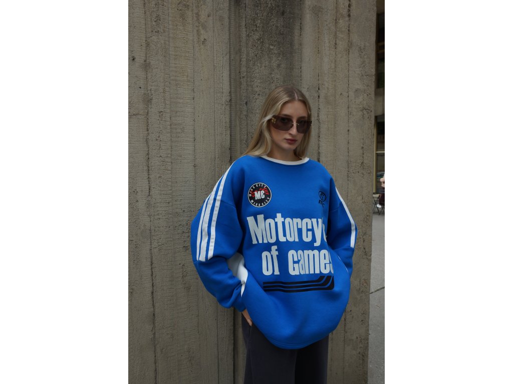 Oversize mikina, ktorú si okamžite zamiluješ! Tento pohodlný kúsok v žiarivej kráľovsky modrej alebo čiernej s bielymi detailami a cool potlačou „Motorcycle of Games“ je dokonalým prepojením streetstylu a komfortu. Voľný strih ti dáva priestor dýchať, cítiť sa slobodne a zároveň vyzerať štýlovo bez námahy. Ideálna k legínam, džínsam alebo len tak na doma, keď chceš zahviezdiť aj medzi štyrmi stenami. Jednoducho je to streetwear na každodenné nosenie, ktorý púta pozornosť.