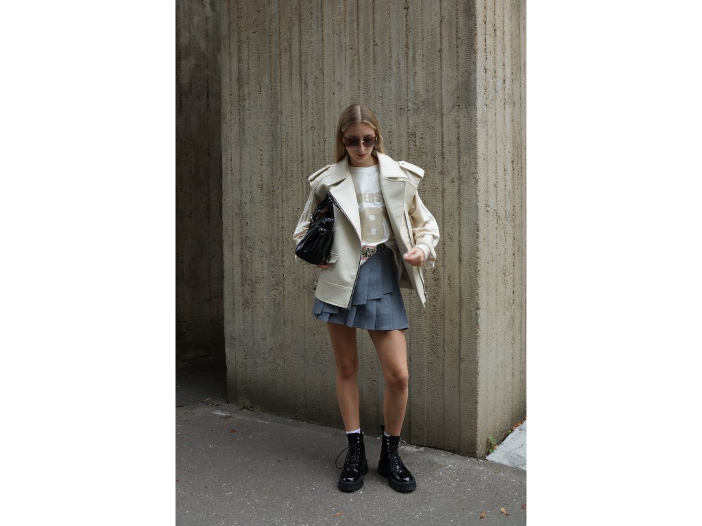 Bledosivý skort s volánovým strihom a elastickým pásom je skvelým a najmä premysleným kúskom do tvojho šatníka. Kombinuje praktickosť kraťasov s elegantným vzhľadom sukne, čo určite oceníš. Príjemný hrejivý materiál je ideálny na chladnejšie dni a je veľmi príjemný na tele. Tento hravý kúsok dodá tvojmu outfitu ženskosť a pohodlie. Budeš z neho nadšená.