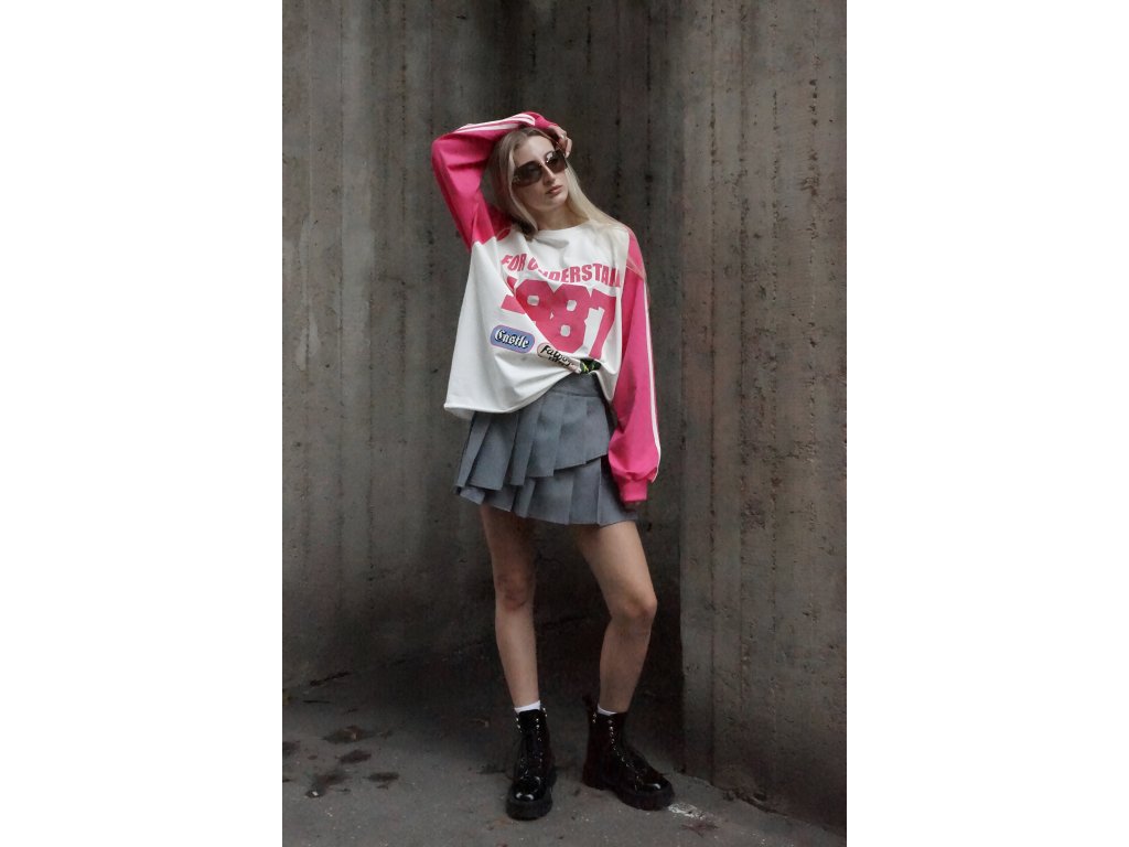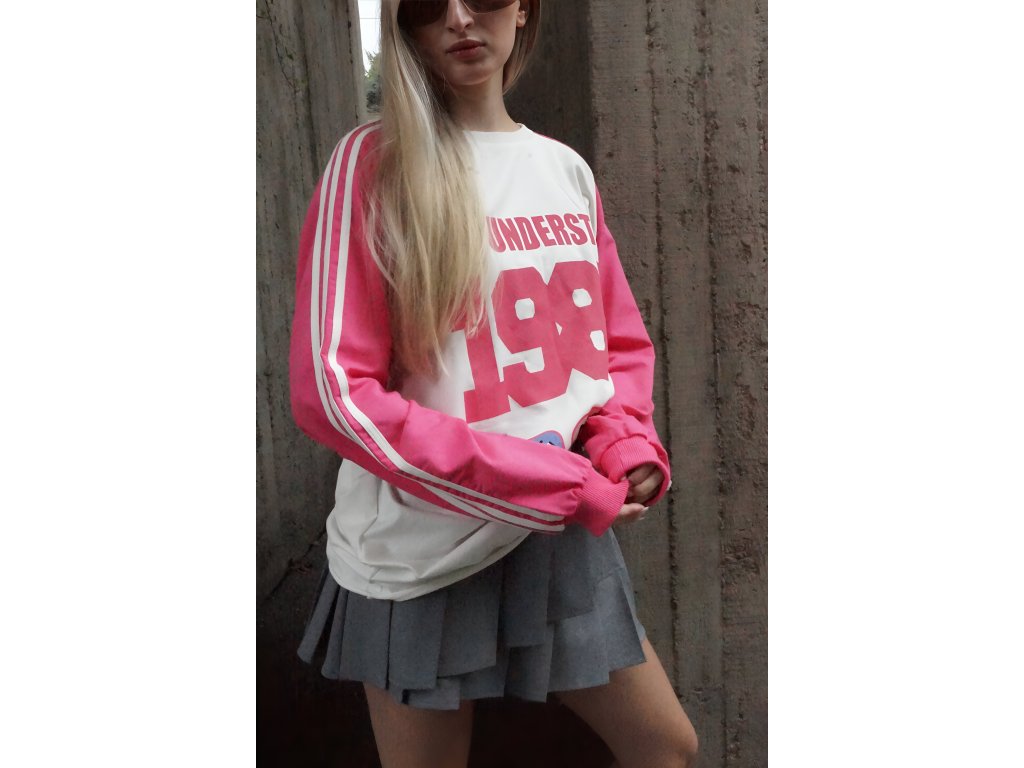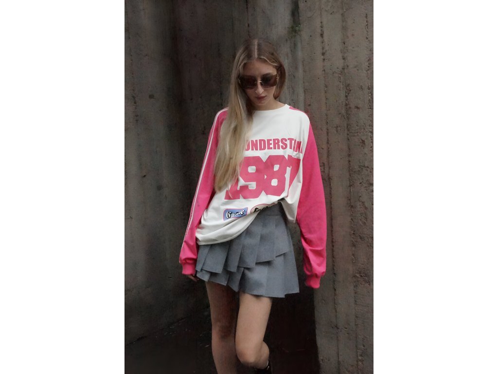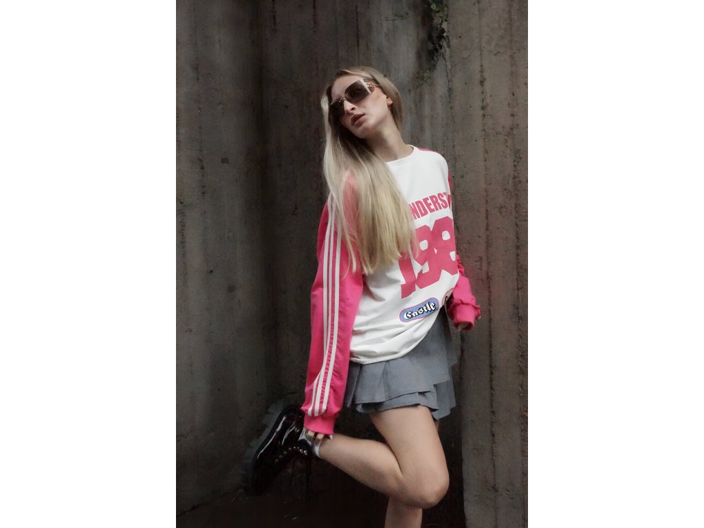 Toto veselé oversized tričko s dlhým rukávom v ružovej farbe je vyrobené z mäkkej bavlny. Trendová potlač mu dodáva hravý nádych a originálny vzhľad. Voľný strih ti zasa zaručí maximálne pohodlie a je ideálny na bežné nosenie, pre ženy, ktoré sa neboja vyčnievať z davu. Určite si takouto ženou aj ty. Vieš o tom, že oblečenie môže byť rovnako hravé ako duša, ktorá ho nosí? Ak si sa v tom aspoň trošku našla, tento kúsok musíš mať, rozžiari ti aj úplne obyčajný deň — a nie len to, vďaka strihu sa budeš cítiť slobodne, no zároveň šik.